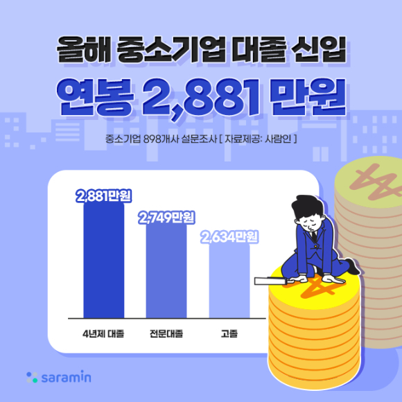 2022년 중소기업 대졸 신입 연봉 - 출처 사람인